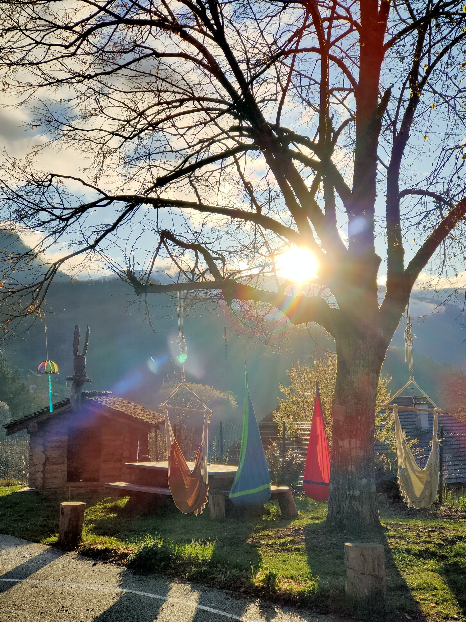 De mon côté, ma pratique a aussi évolué. Depuis deux ans, je fais classe dehors un mardi sur deux, et c’est un vrai bonheur, pour les élèves comme pour moi. Nous accueillons les surprises avec enthousiasme : rencontre avec un triton alpestre, interview d’un pilote de montgolfière qui atterrit... ! Les séances de maths, d’écriture, de musique, de théâtre, de sciences au bois sont denses. Nous poursuivons le travail commencé en classe dans le bois, et inversement nous poursuivons le travail fait au bois en classe . Quelle richesse incroyable ! Cela m’a encouragé à suivre des formations dont j’ai eu connaissance par ton réseau, qui m’ont permis de progresser et de m’épanouir encore davantage dans ma pratique et on y vient, dans ma vie. En effet, je pense que ce projet a tout simplement transformé ma vision des choses et je crois que cela est le plus précieux. Aujourd’hui, je vois l’école, les élèves, mon métier, l’éducation de mes enfants et ma place de citoyenne sous un tout autre angle. Actuellement je m’implique dans un collectif citoyen pour éviter la création d’une zone d’activités à vocation industrielle sur ma commune. Je ne l’aurais pas fait si je ne n’avais pas vécu tout ce chemin à l’école pendant ces cinq ans ! L’onde portée est très grande et en mouvement !"